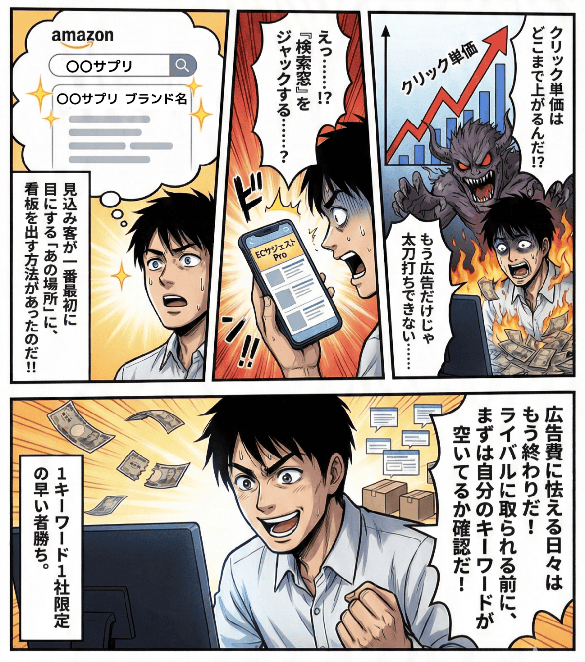 「Amazonは価格比較の場と思ってましたが、“よく検索されてる”という印象になるらしく、ブランドへの信頼が一気に上がった感じがします。“なんとなく安心できたから買った”というレビューも出てきました。」